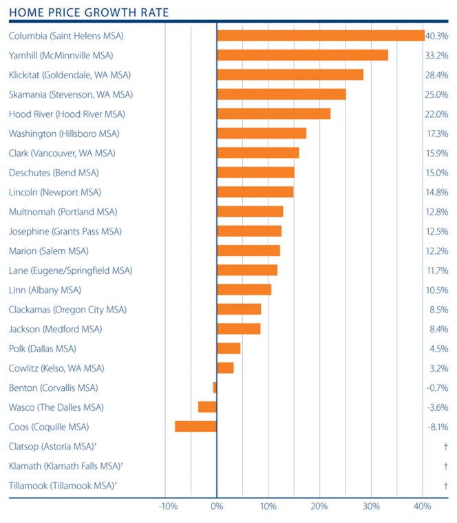 There were three counties where prices saw declines. Coos County saw the greatest drop (-8.1%), but we again put this down to the fact that it is a fairly small market. The other markets where prices dropped were Wasco (-3.6%) and Benton (-0.7%) Counties, which are also fairly small markets.