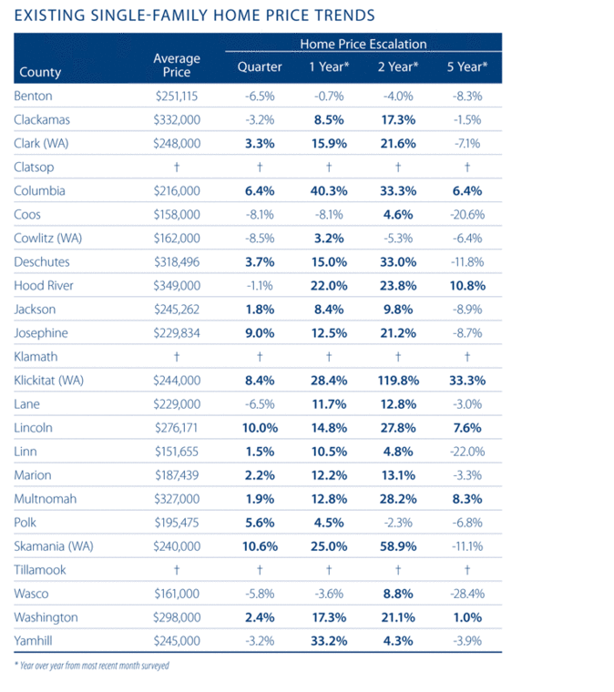 Regular readers of the Gardner Report will note that the third quarter report excludes three counties—Clatsop, Klamath and Tillamook—which are usually included. Data issues precluded us from gathering information on these counties, but we hope to resume inclusion of these markets in our next report. We would add that the absence of these counties does not fundamentally change our analysis.