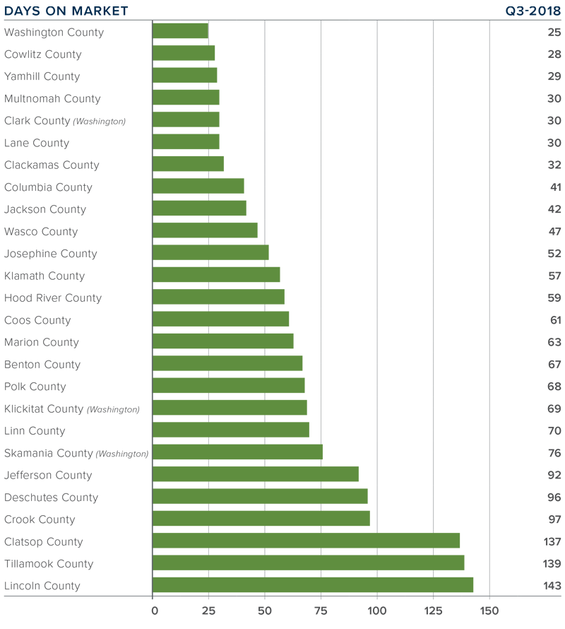 - Homes again sold the fastest in Washington (25days), Cowlitz (28 days), and Yamhill (29 days) Counties.