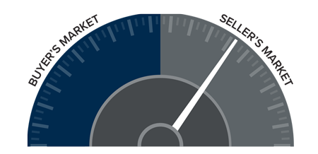 The speedometer reflects the state of the region’s real estate market using housing inventory, price gains, home sales, interest rates, and larger economic factors.
