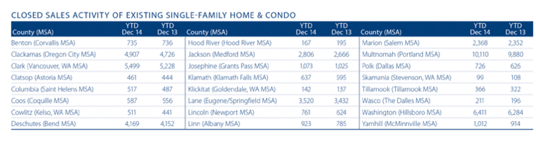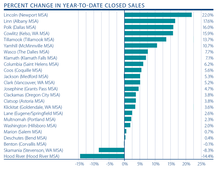 Year over year, sales increased by the greatest margin in Linn County (+ 17.6%). Additional double-digit gains were seen in Polk, Cowlitz, Tillamook, and Yamhill Counties.