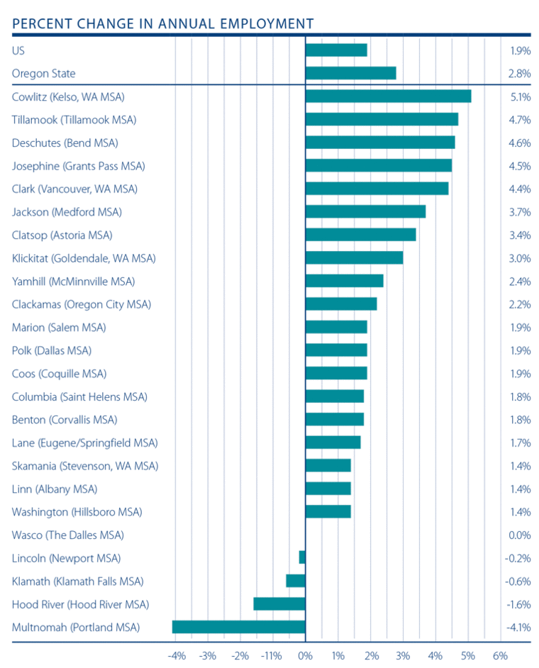 The Oregon economy continues to improve with a majority of the counties in this report seeing employment growth above the national average.