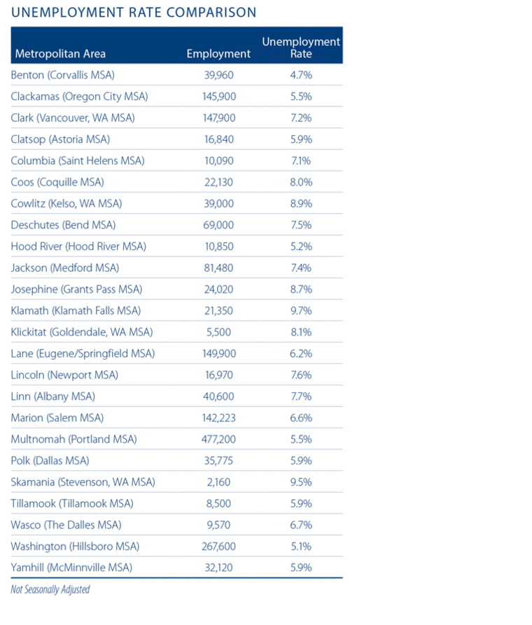 When compared to a year ago, the growth in employment was most prevalent in Multnomah County where employment rose by 10,800 jobs. This was followed by Clark County which saw total employment rise by 6,200, and Washington County rounded out the top three with an increase of 3,600 jobs.