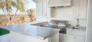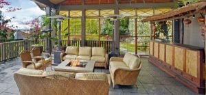 If you entertain a lot, an outdoor kitchen is the ideal space for summer entertaining. Bring out your inner Tom Douglas with a cooking station that includes a high-end grill, refrigerator, wine chiller, and elegant washbasin. Round this all out with a concrete counter, bluestone tile floor, and stainless steel.