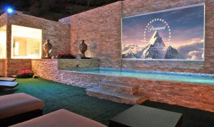 Nothing says summer like outdoor movies, so why not create your own personal drive-in? All you need is a projector to watch your favorite movies, some dangling lights in the trees, blankets, and pillows. You could also watch it from a hanging bench or a floating bed. Get über creative and buy an inflatable flat screen for your pool area and turn it into a full-fledged theater, inflatable lounge chairs and all. This way you’ll never have to choose between movies and precious pool time.