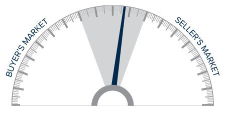 This speedometer reflects the state of the region’s real estate market using housing inventory, price gains, home sales, interest rates, and larger economic factors.