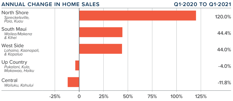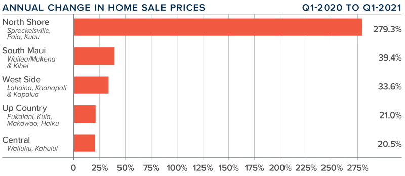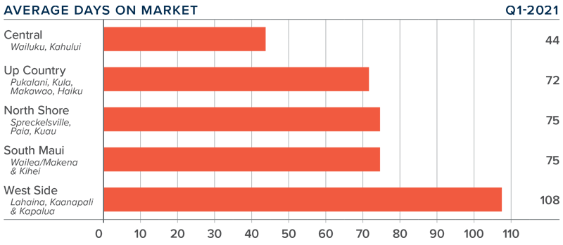 ❱ The average number of days it took to sell a home on Maui rose 18 days compared to the first quarter of 2020.