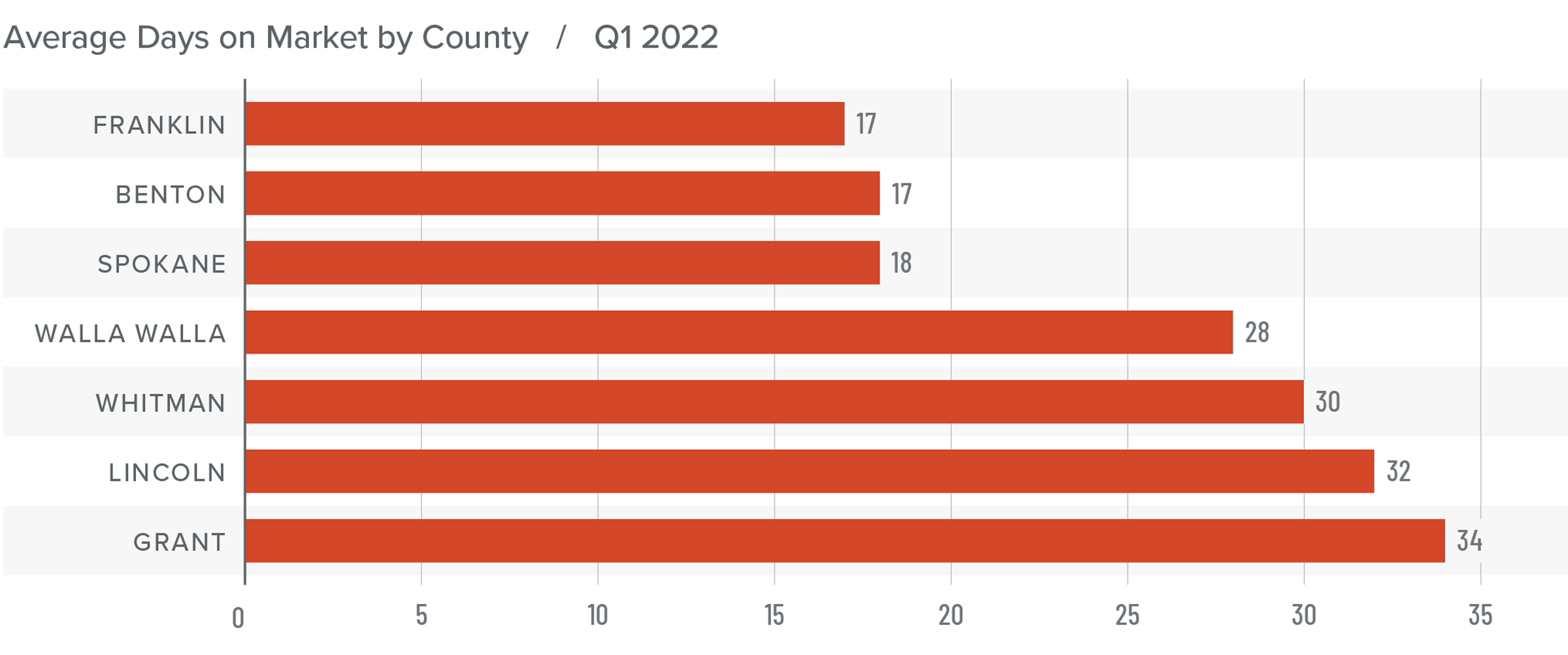 ❱ All counties other than Spokane and Franklin saw the average number of days-on-market drop compared to the same period in 2021. That said, the increased market time in Spokane and Franklin counties was modest.
