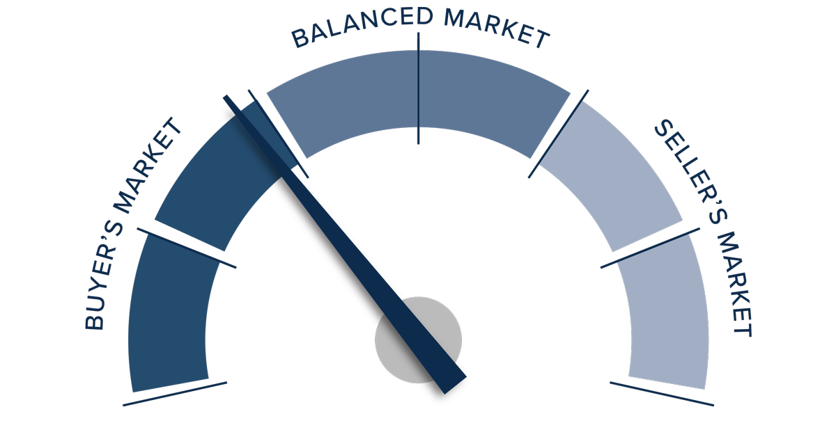 This speedometer reflects the state of the region’s real estate market using housing inventory, price gains, home sales, interest rates, and larger economic factors.