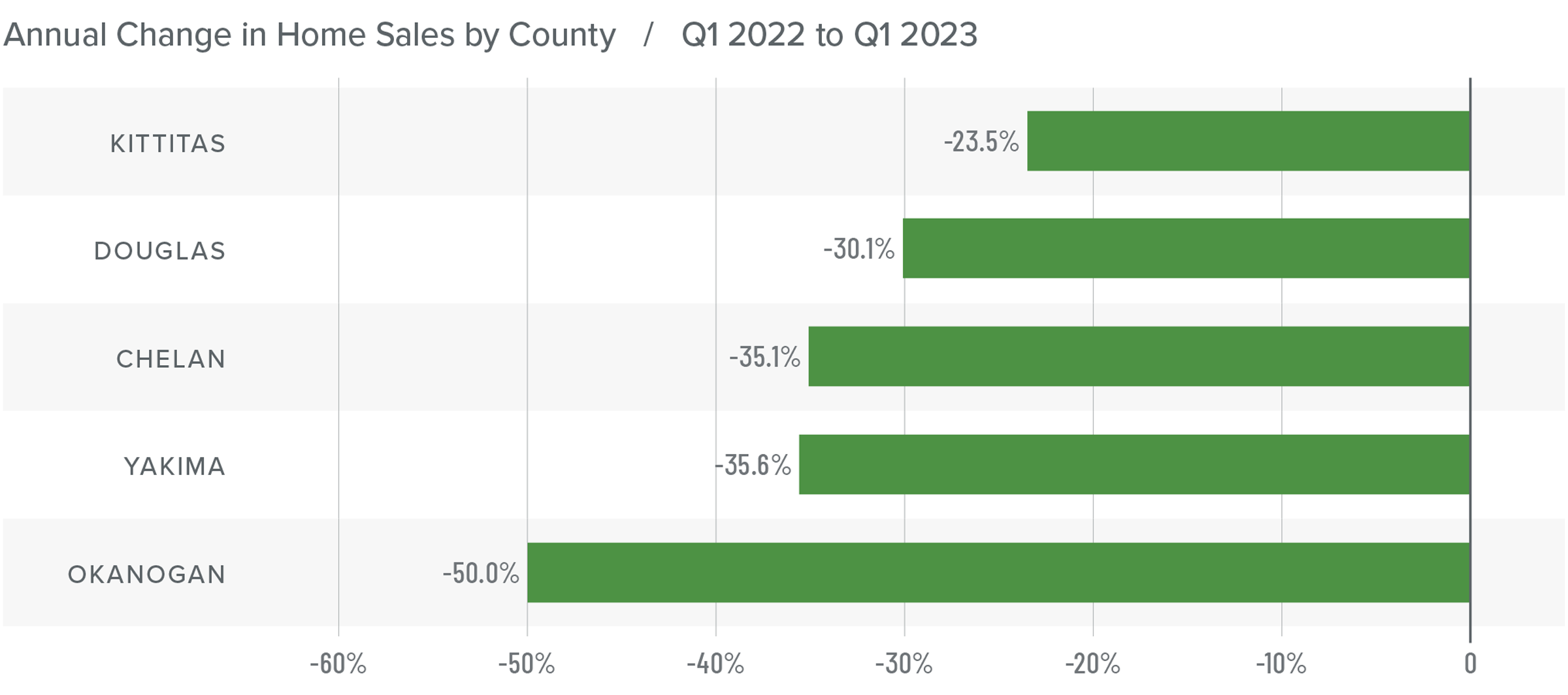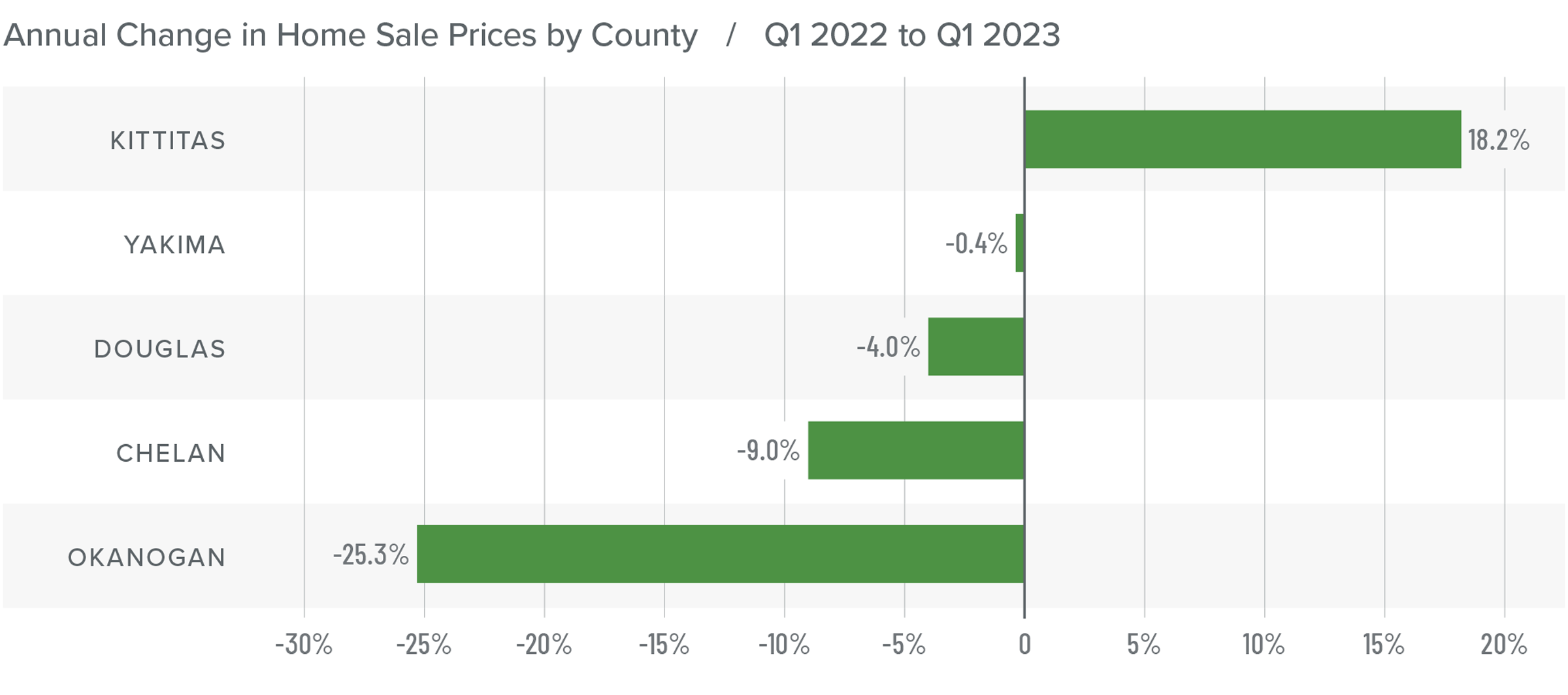The following analysis of select counties of the Central Washington real estate market is provided by Windermere Real Estate Chief Economist Matthew Gardner. We hope that this information may assist you with making better-informed real estate decisions. For further information about the housing market in your area, please don’t hesitate to contact your Windermere Real Estate agent.