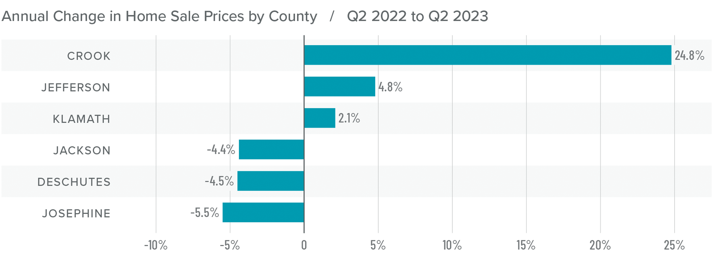 ❱ Three counties contained in this report saw sale prices rise year over year, while three fell. Prices in Crook County experienced a significant increase.