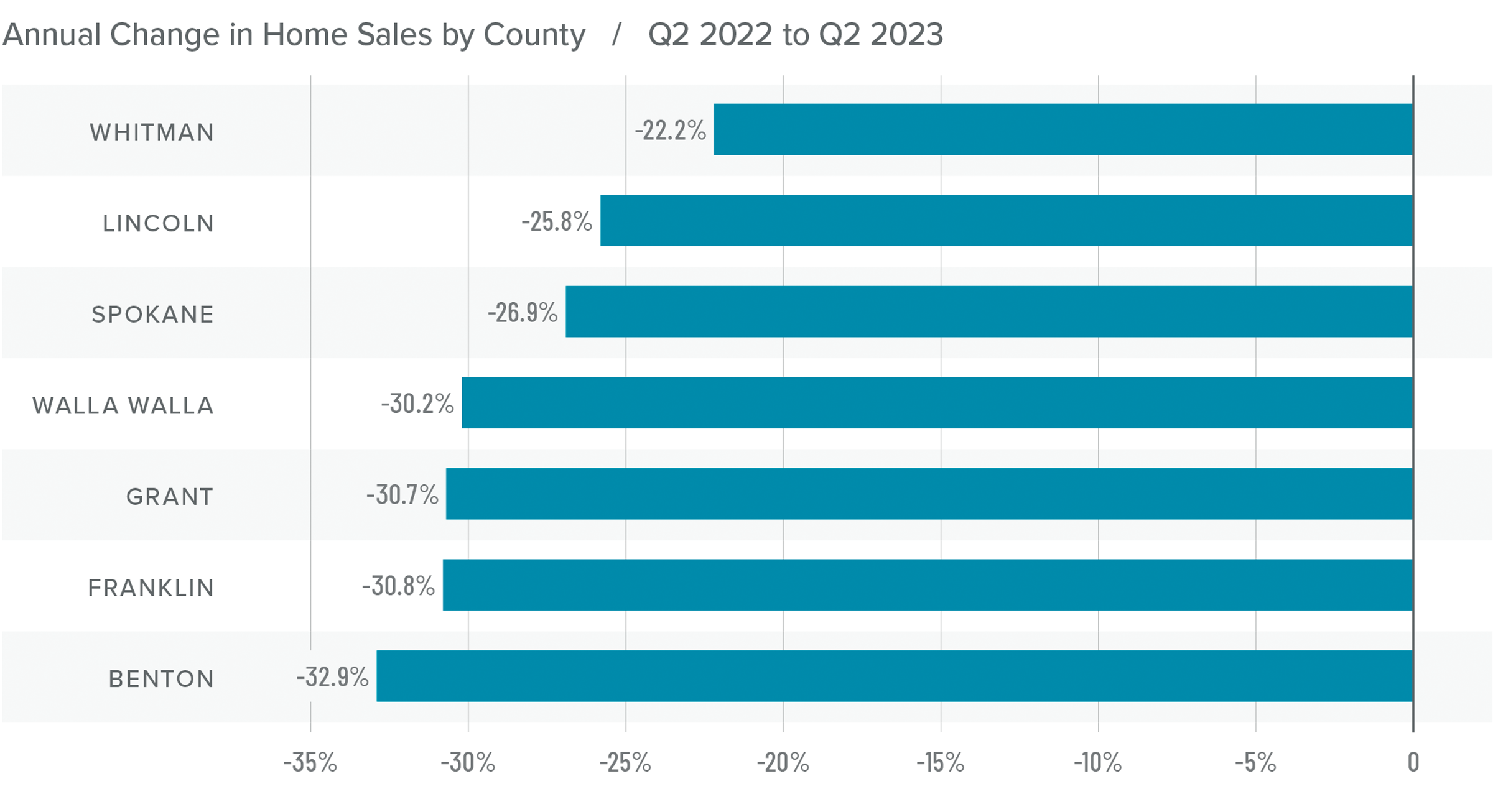 The following analysis of select counties of the Eastern Washington real estate market is provided by Windermere Real Estate Chief Economist Matthew Gardner. We hope that this information may assist you with making better-informed real estate decisions. For further information about the housing market in your area, please don’t hesitate to contact your Windermere Real Estate agent.