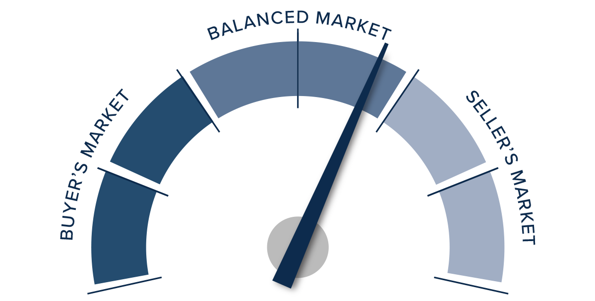 This speedometer reflects the state of the region’s real estate market using housing inventory, price gains, home sales, interest rates, and larger economic factors.