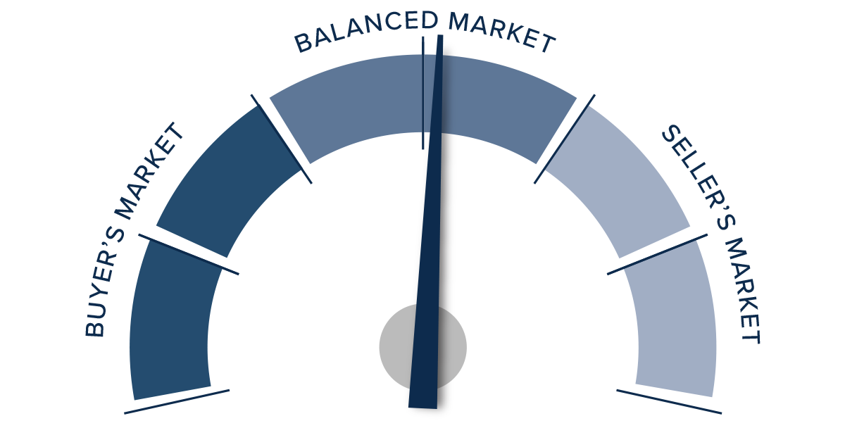 Since there are components of the market that favor both sides, I am leaving the needle in the balanced quadrant, albeit modestly favoring home sellers.