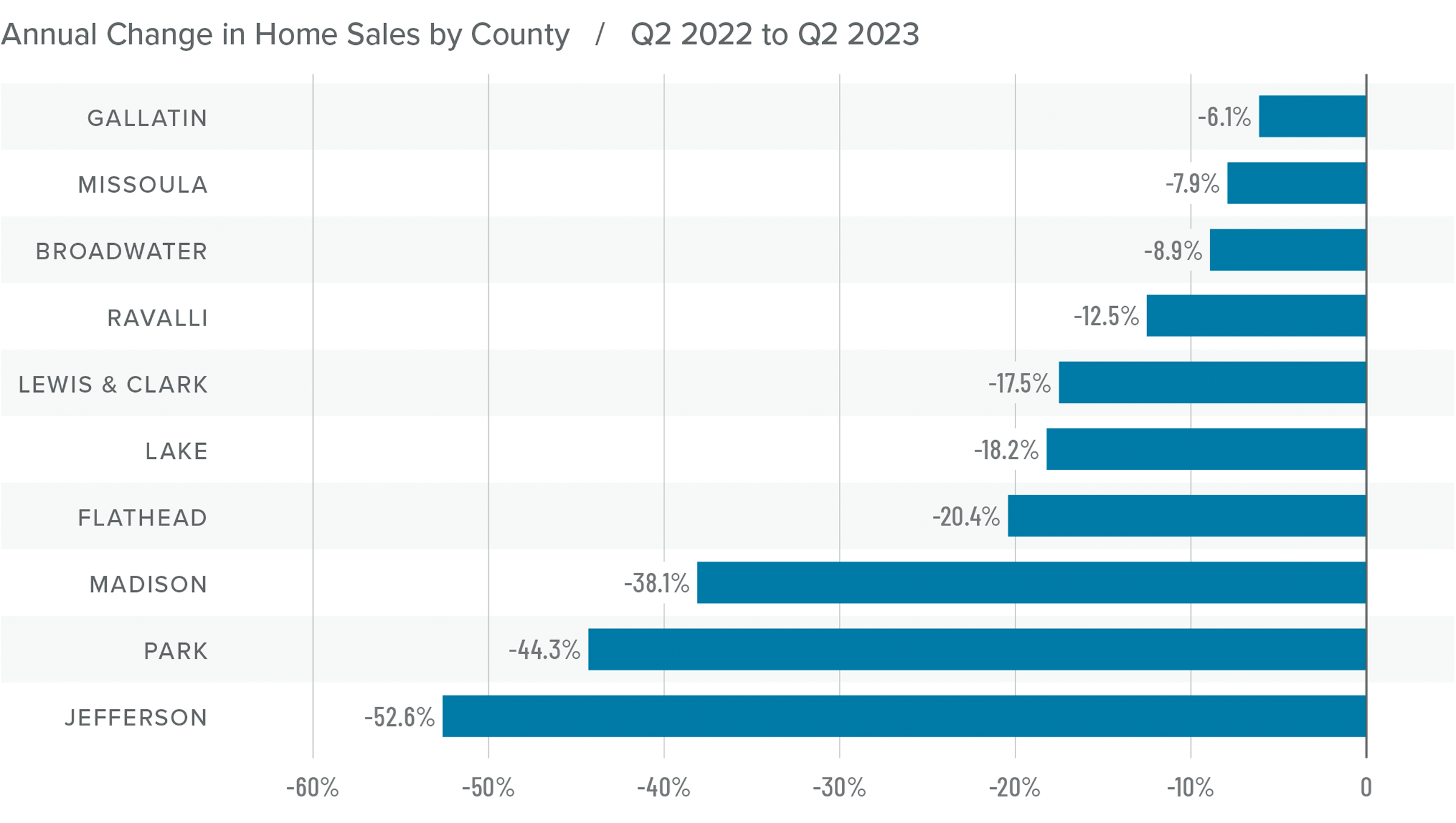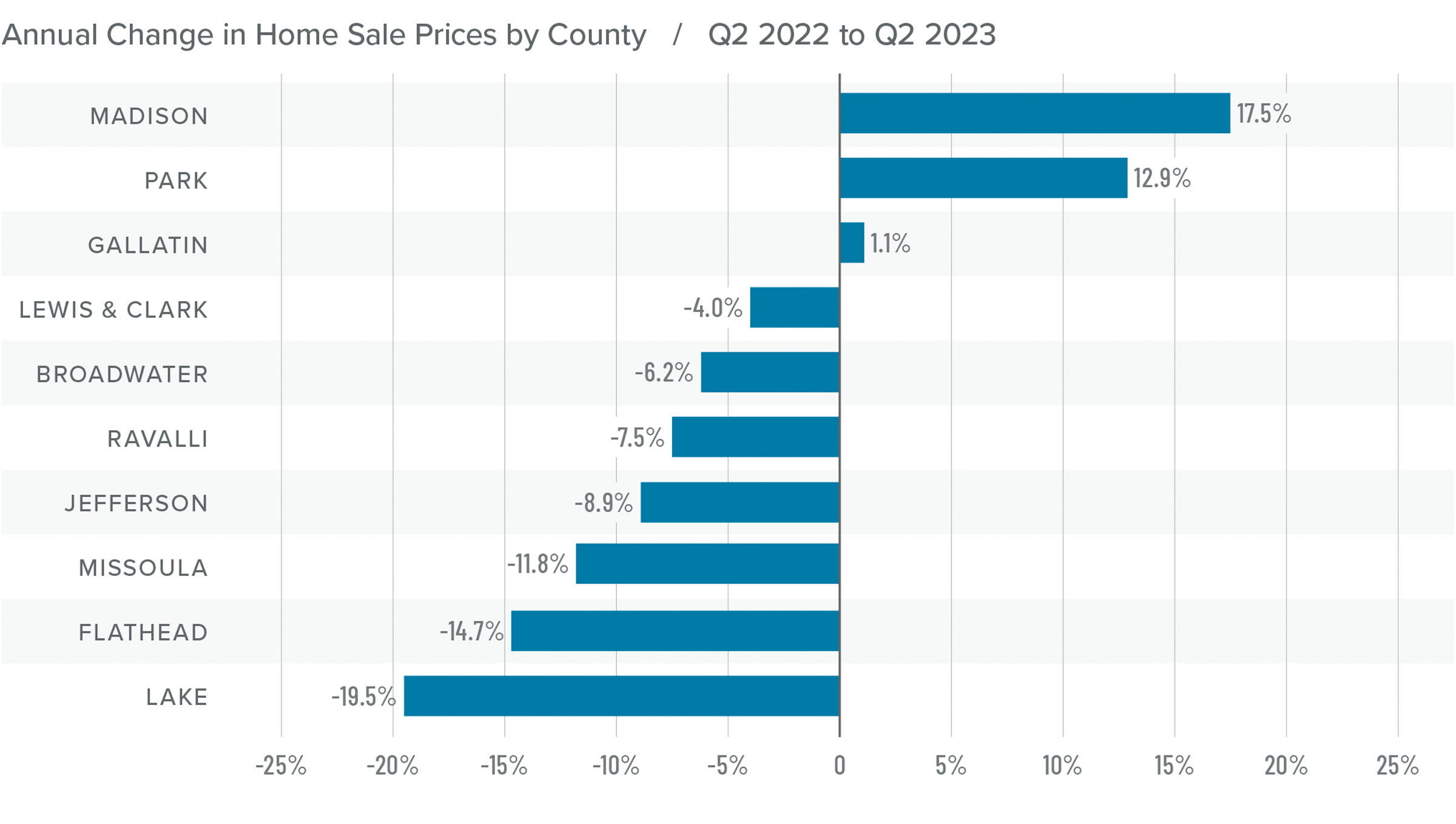 The following analysis of select counties of the Montana real estate market is provided by Windermere Real Estate Chief Economist Matthew Gardner. We hope that this information may assist you with making better-informed real estate decisions. For further information about the housing market in your area, please don’t hesitate to contact your Windermere Real Estate agent.