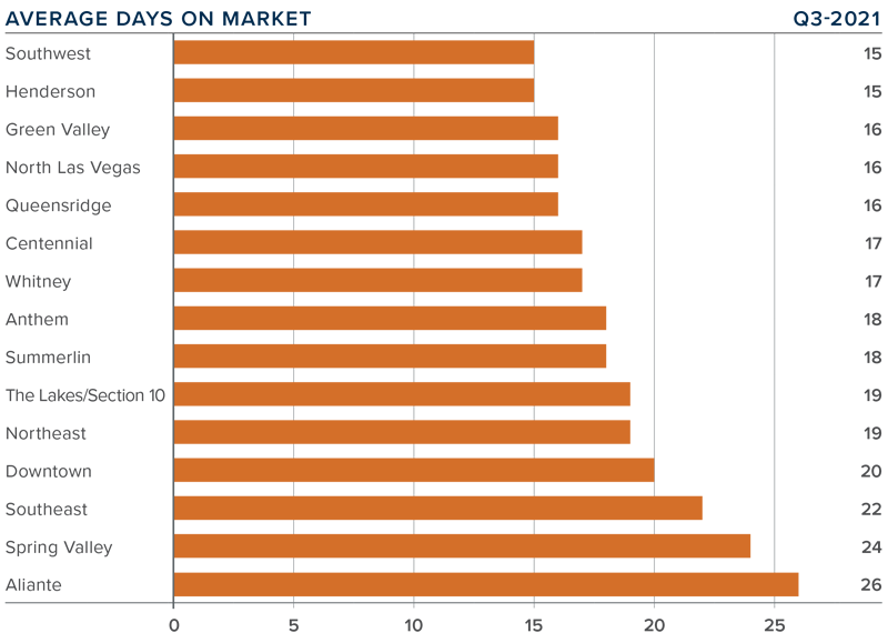 ❱ Days on market dropped across the board compared to a year ago, and all areas other than Anthem and Queensridge saw market time fall compared to the second quarter of this year.
