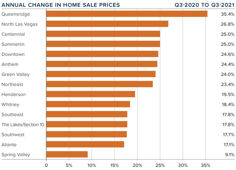 ❱ Prices rose by double digits in every sub-market other than Spring Valley compared to the same quarter last year. Compared to the second quarter of this year, prices were also higher in every area other than Anthem and Henderson.