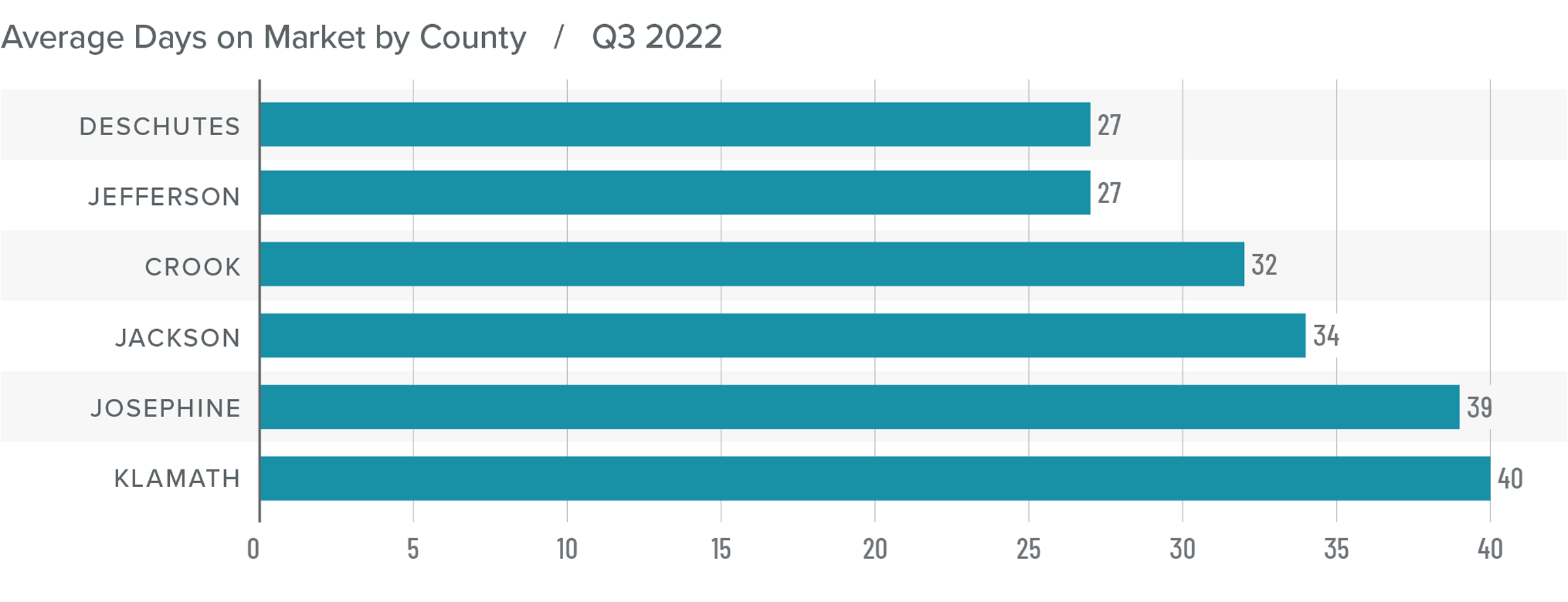 ❱ All counties saw market time rise compared to a year ago. Crook and Jefferson counties saw market time fall compared to the second quarter of this year.