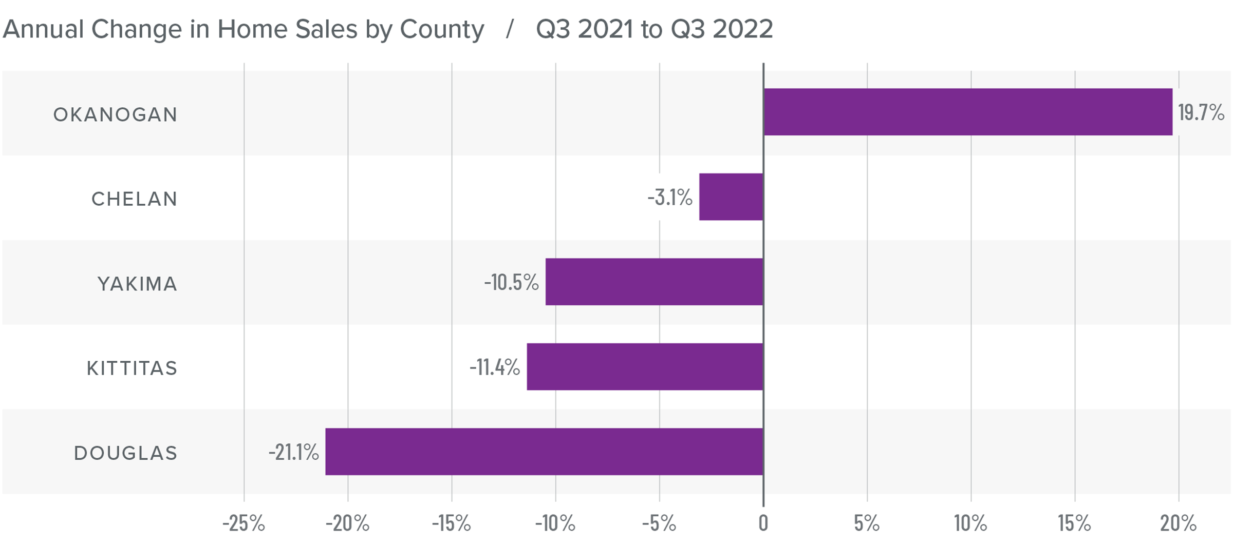 The following analysis of select counties of the Central Washington real estate market is provided by Windermere Real Estate Chief Economist Matthew Gardner. We hope that this information may assist you with making better-informed real estate decisions. For further information about the housing market in your area, please don’t hesitate to contact your Windermere Real Estate agent.