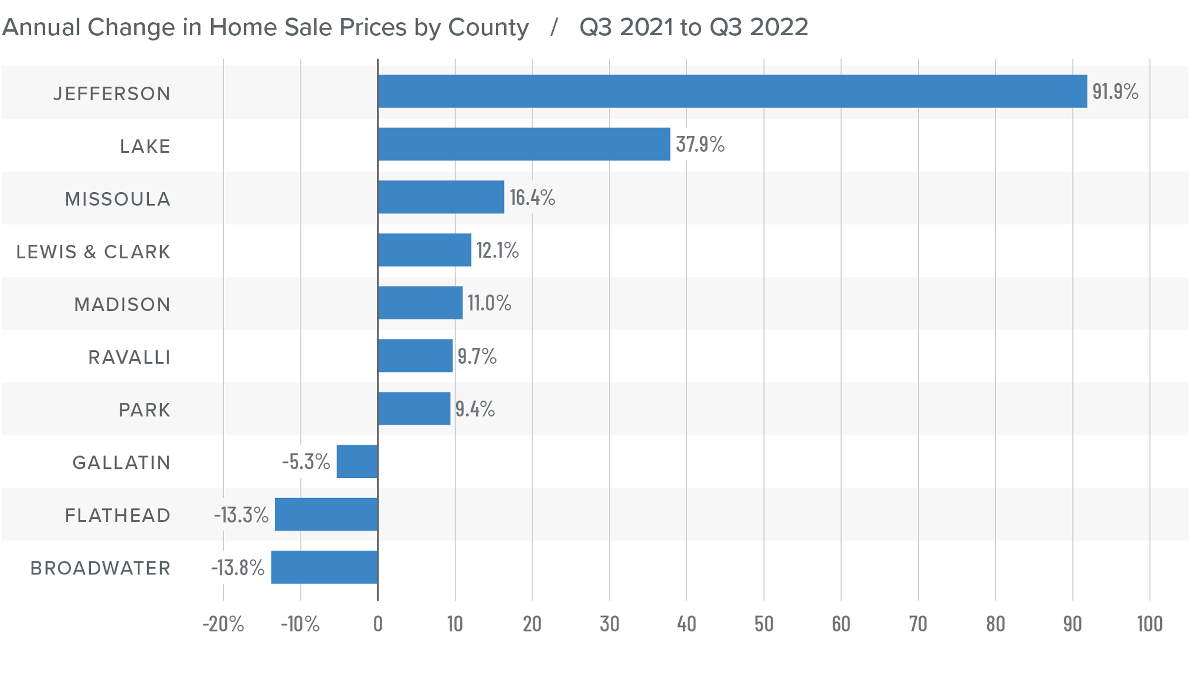 The following analysis of select counties of the Montana real estate market is provided by Windermere Real Estate Chief Economist Matthew Gardner. We hope that this information may assist you with making better-informed real estate decisions. For further information about the housing market in your area, please don’t hesitate to contact your Windermere Real Estate agent.