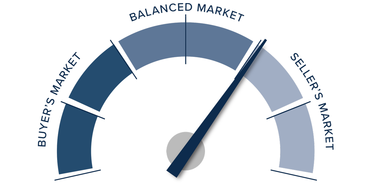 This speedometer reflects the state of the region’s real estate market using housing inventory, price gains, home sales, interest rates, and larger economic factors.
