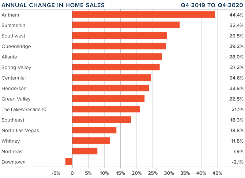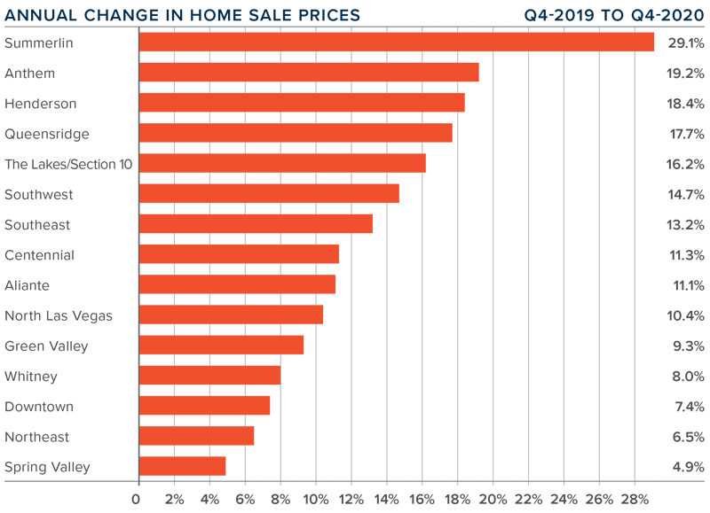 ❱ Prices rose in every sub-market compared to the same quarter last year, with significant gains in Summerlin. An additional nine neighborhoods saw double-digit price growth.