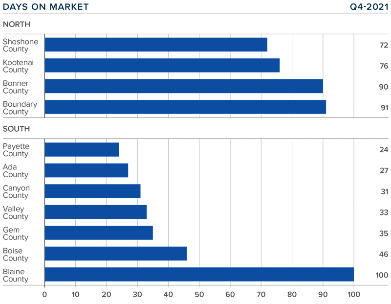 ❱ It took an average of 82 days to sell a home in Northern Idaho and 42 days in the southern part of the state.