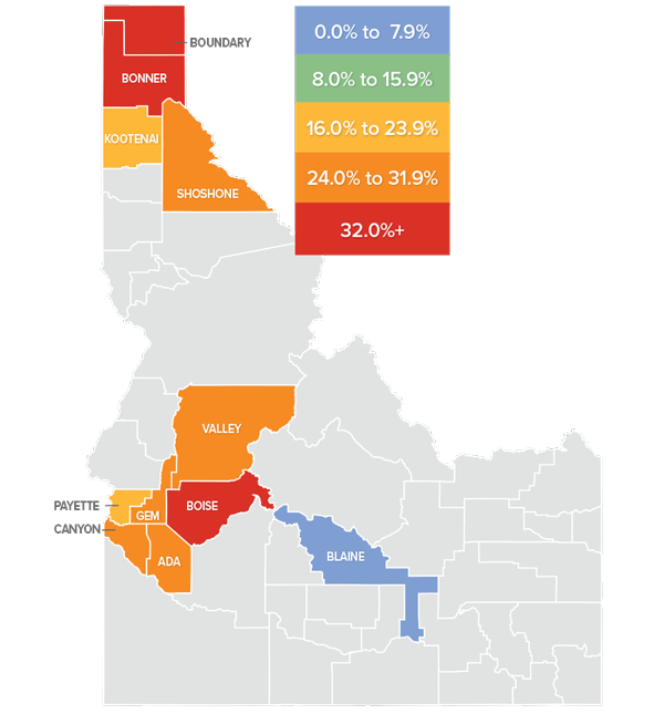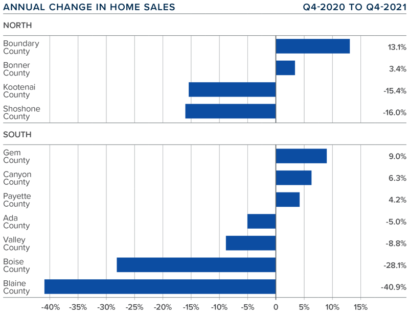❱ Year-over-year, sales improved in Boundary and Bonner counties in the northern part of the state. Sales rose in Gem, Canyon, and Payette counties in Southern Idaho.