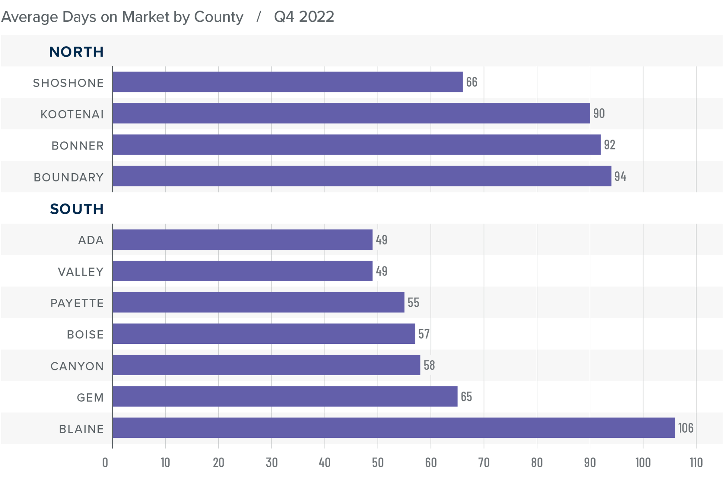 ❱ It took an average of 86 days to sell a home in Northern Idaho and 63 days in the southern counties covered by this report.