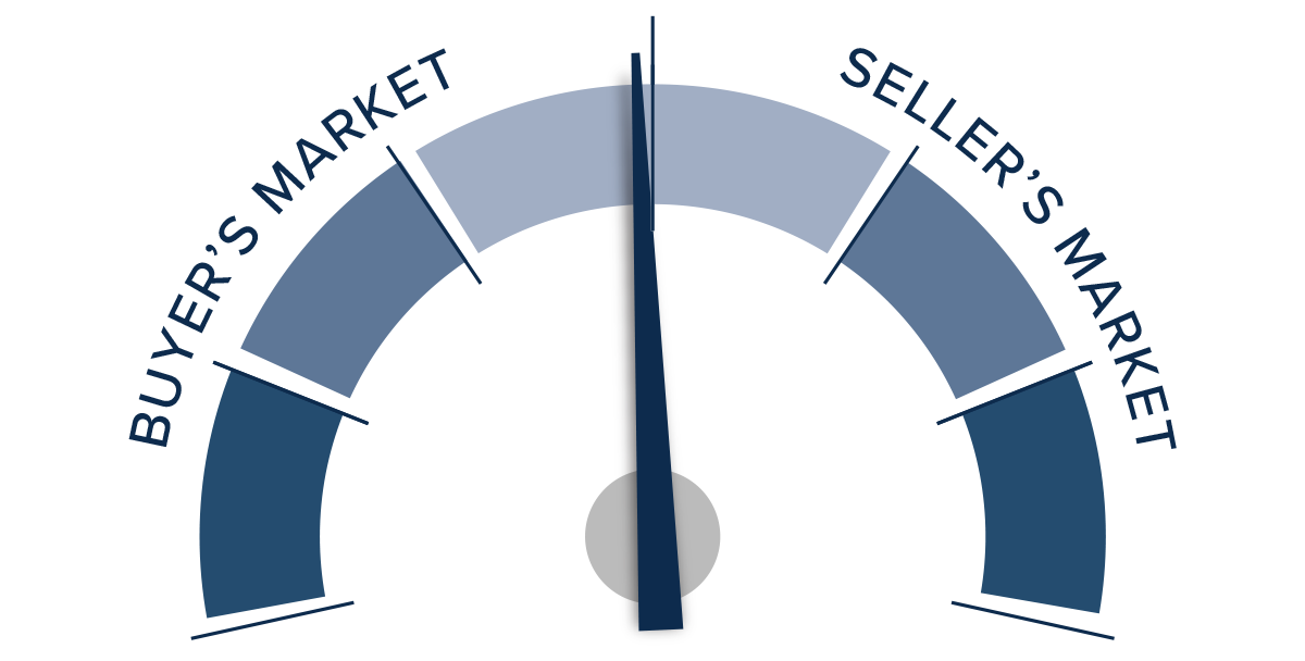 This speedometer reflects the state of the region’s real estate market using housing inventory, price gains, home sales, interest rates, and larger economic factors.
