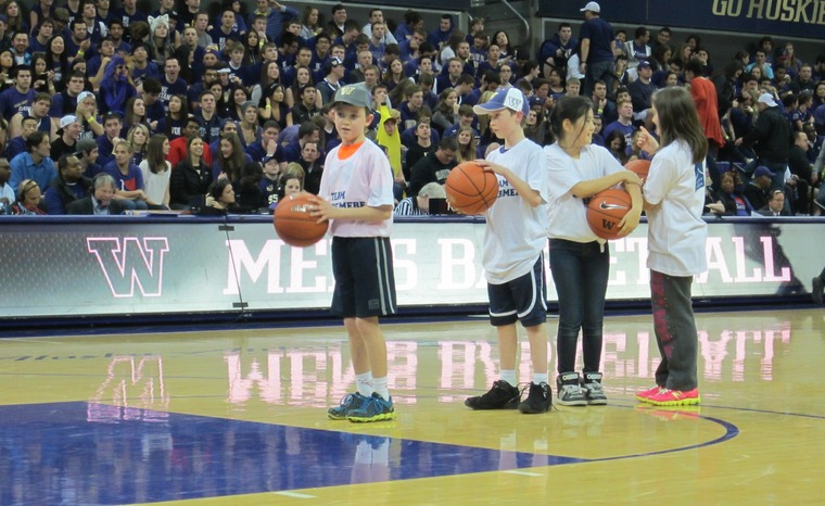 On February 28, four YMCA youth participated in the annual Husky Hoops free-throw fundraiser, at the University of Washington vs. Washington State men’s basketb