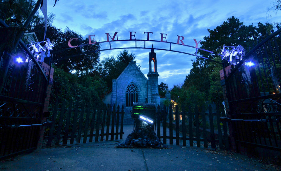 Did something just move over there? Everything is a piece of the show at this remarkable home, which has featured a spooky pop-up cemetery every Halloween for the past 20 years. From its faux-church to the tombstones and skeletons, these homeowners have perfectly executed their very own haunted house.