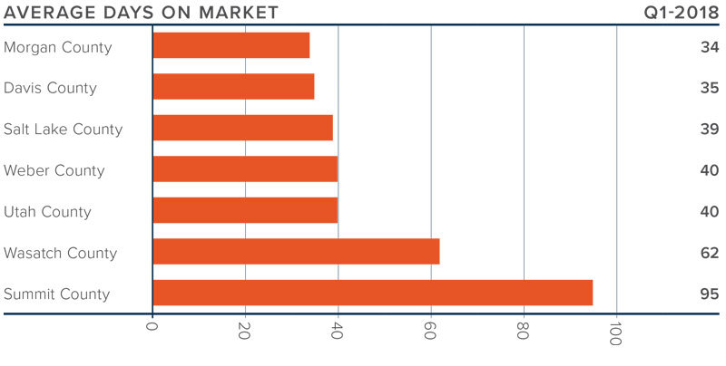 - Sales occurred the fastest in Morgan and Davis Counties and slowest in Summit County, but all markets saw the length of time it took to sell a home either remain static or drop compared to the first quarter of 2017.