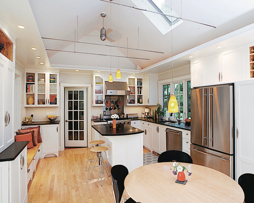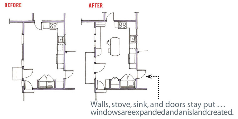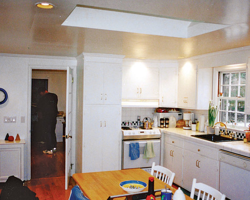Work with what you've got (before): Keeping the kitchen size the same while vaulting the ceiling dramatically increases the overall spaciousness of the room, as you'll see in the next photo.