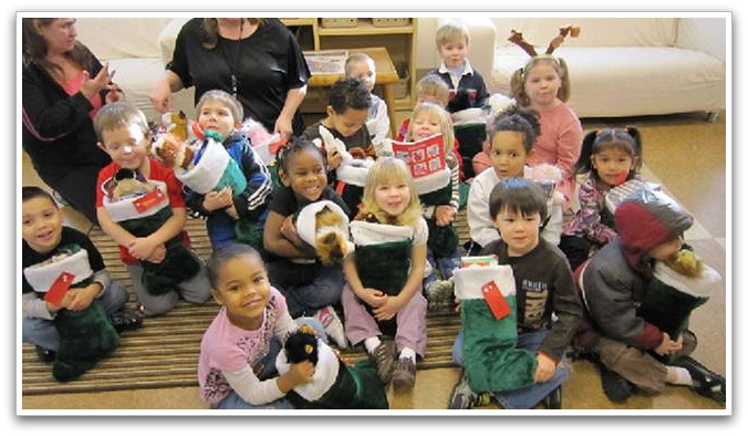 A few weeks prior to the event, each agent received the name, age and gender of a few children at the daycare and set about filling a stocking for each child with toys, clothes, books and other gifts and then topped the stocking with a stuffed animal.