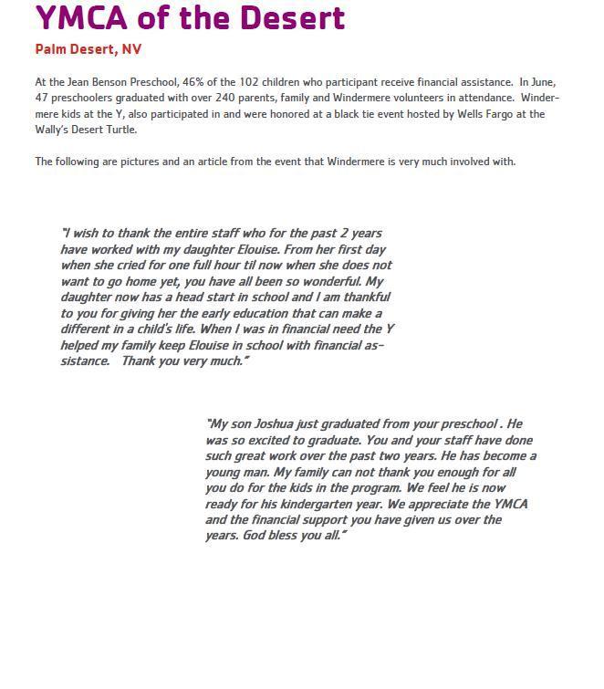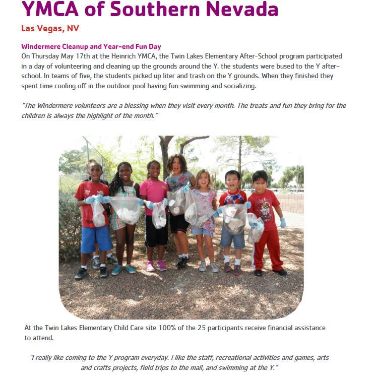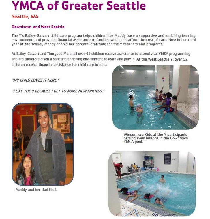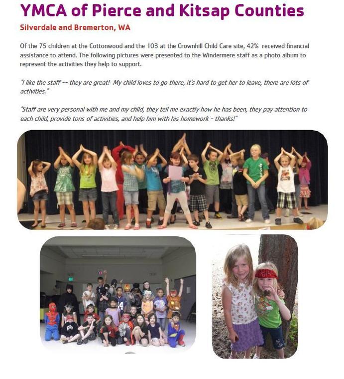 In 2006, the Windermere Foundation and the YMCA partnered to create Windermere Kids at the Y, a tuition-assistance and volunteer program that provides low-income children with quality after-school enrichment programs and the all-important summer camp experience.