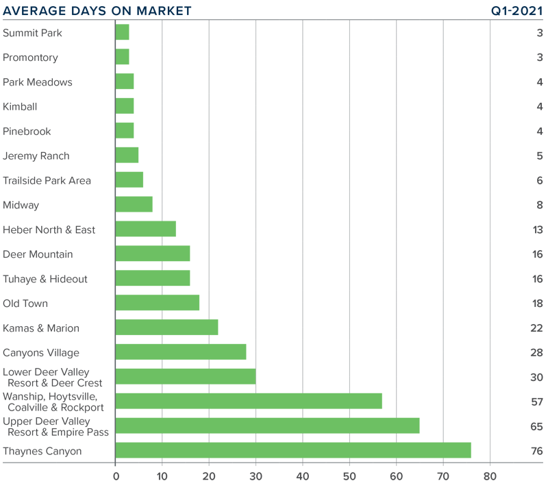 ❱ In small, expensive markets, such as those in Park City, it’s not surprising to see the speed at which homes sell swing wildly from one quarter to the next. There is clearly still buyer demand, but given high average prices, it’s taking a little longer for homes to sell.
