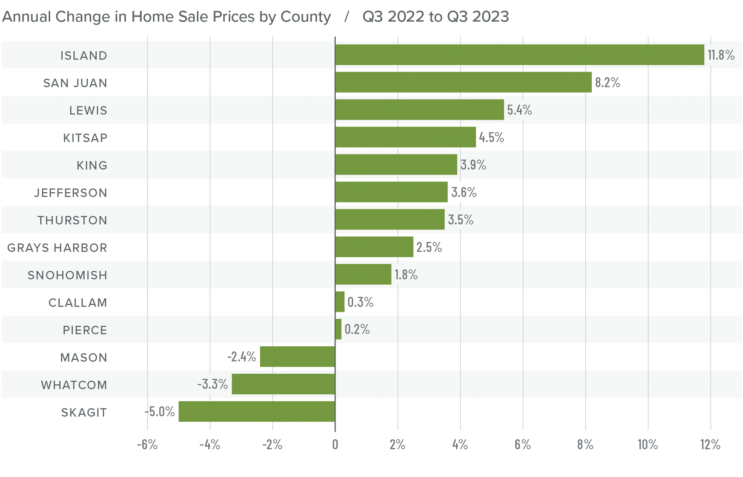 Residential closed sales dipped 1% year over year here in the 4-county region, largely due to a 2% drop in King County. Closed sales dipped 1% in Kitsap County; climbed 2% in Pierce County, including Tacoma; and were flat in Snohomish County, including Everett.