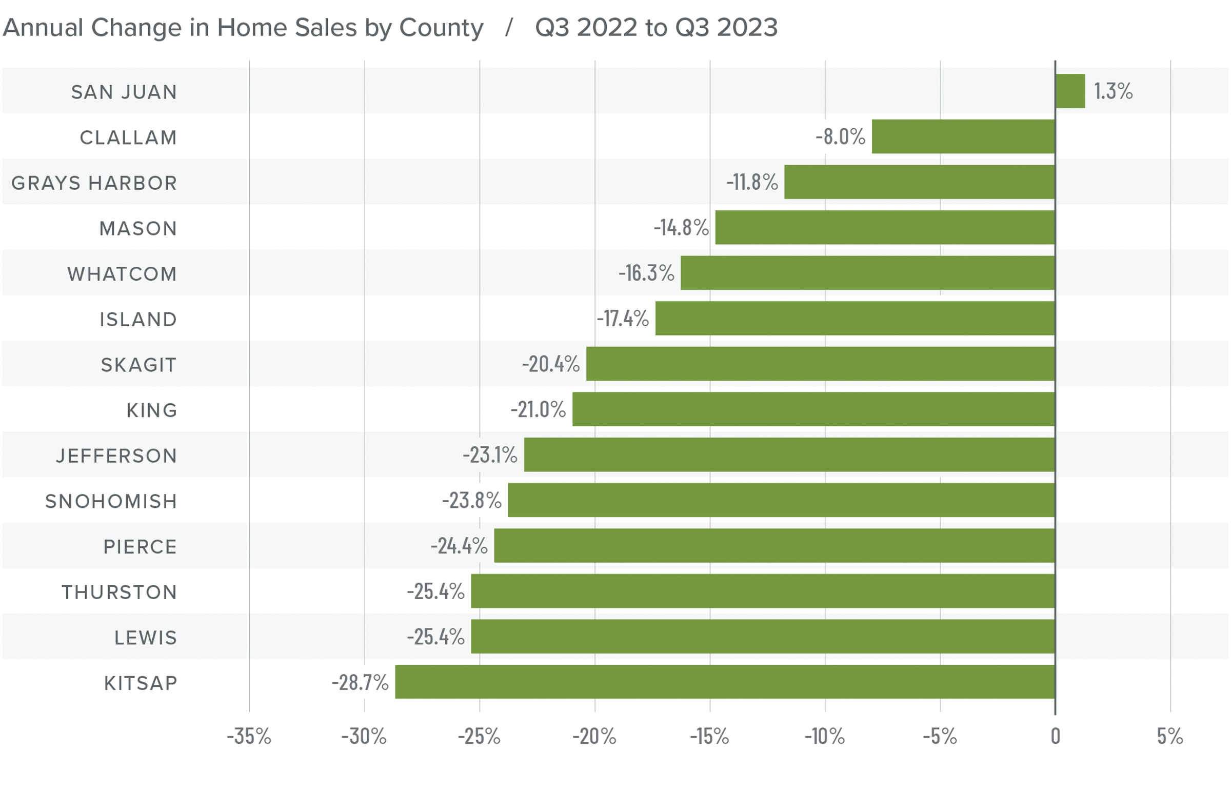 Now I’ll dig into the four counties encompassing the greater Seattle area, where buyers pulled back even more.