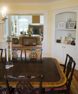 Traditional style interiors are an ageless favorite, offering comforting elegance and gracious living that easily adapts to changing lifestyles. Based upon styling first popularized in the 18th and 19th centuries, Traditional decoration relies upon the commanding presence of finely crafted woodworking. Queen Anne colors combined with Chippendale and Thomas Sheraton furniture designs are thought to be the universal benchmark of craftsmanship and lines of design. Fabrics in a traditional room are generally neither too shiny, nor too textured, with solid, tone-on-tone, and muted patterns. Color in a traditional room is often in a mid-range of tones, though very dark colors are often used for window coverings. The overall ambiance of traditional decor evokes comfortably homey, understated ambiance.